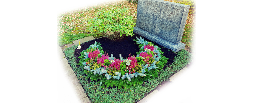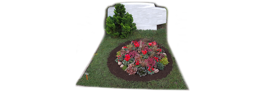 - Sofern keine bestimmten Pflanzen vereinbart sind, wählen wir für die Grabstelle geeignete, jahreszeittypische Pflanzen in mittlerer Art und Güte aus.